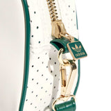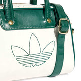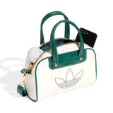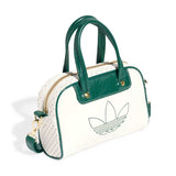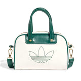 Inspired by iconic adidas trainers, this mini bowling bag is a heritage silhouette with modern style. Perforated and crinkled faux leather pairs up with contrast-colour piping for a look that's all about casual cool. With a detachable shoulder strap, this bag is as versatile as it is fashionable. An embroidered Trefoil and metallic-gold hardware provide the finishing touches.